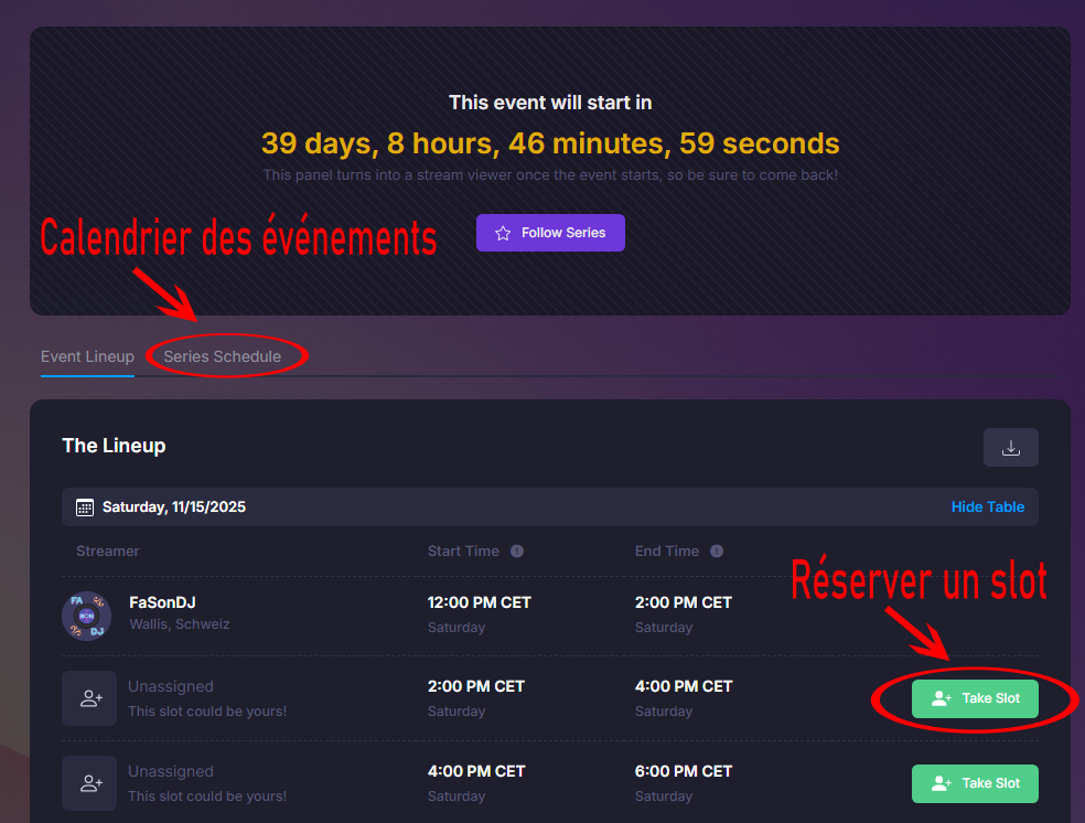 3.: Choisissez votre créneau horaire en cliquant sur la case verte correspondante.